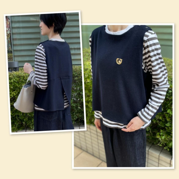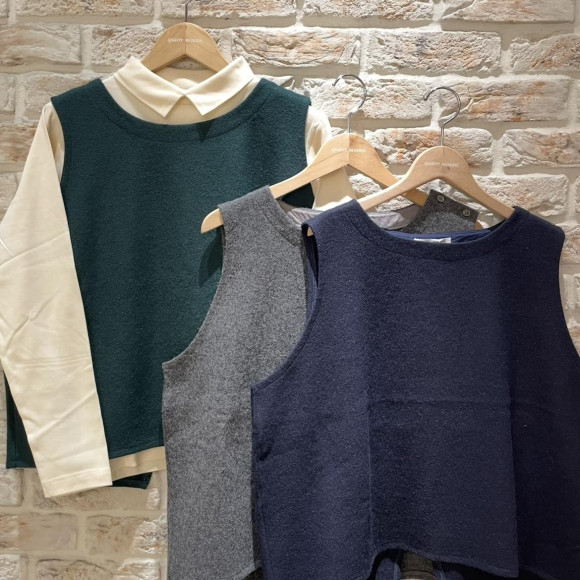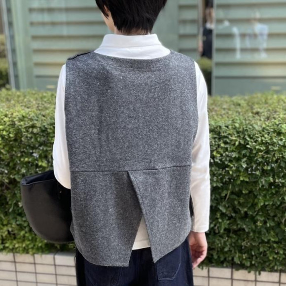 コーディネートにすっと馴染む変形ベストのご紹介です。