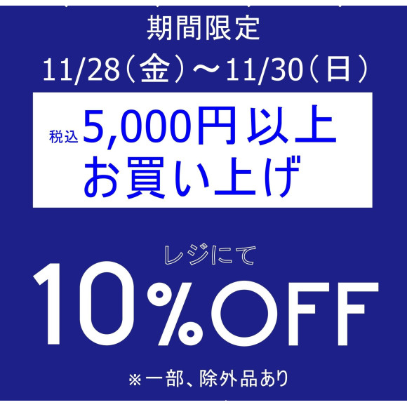 内容:5000円以上お買い上げで、レジにて10%OFFいたします