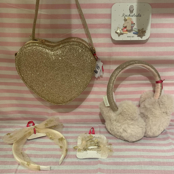 ゴールドが大人っぽいポシェット、可愛い耳付きイヤーマフ、キラキラときめくヘアアクセサリーなど、たくさんのアイテムが入荷しております。