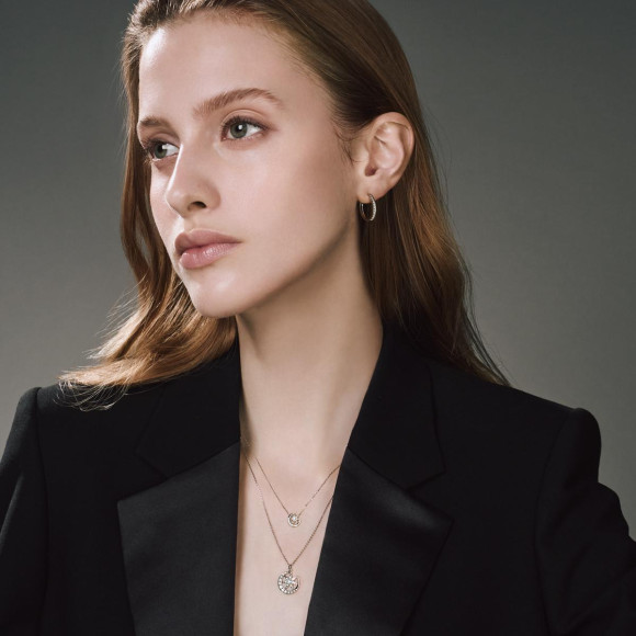 プラチナの凛とした白い輝きとダイヤモンドのきらめきが、モチーフジュエリーを甘さを抑えた大人のアイテムに仕上げています。