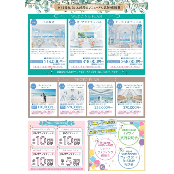 ★12月4日(木)HISアバンティ&オアシス仙台パルコ2店はリニューアルオープンをいたします!!★