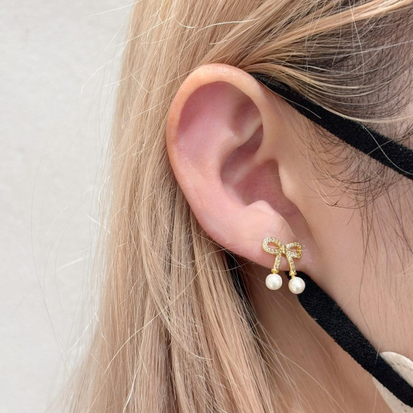 小柄ながらのリボンですがパールが下に付いていて、とてもキュートになっております☆彡