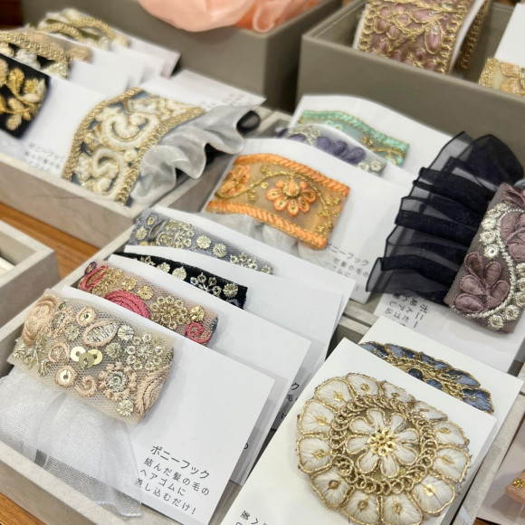 輪ゴムに通すだけ ⭐︎ インド刺繍ポニーフック
