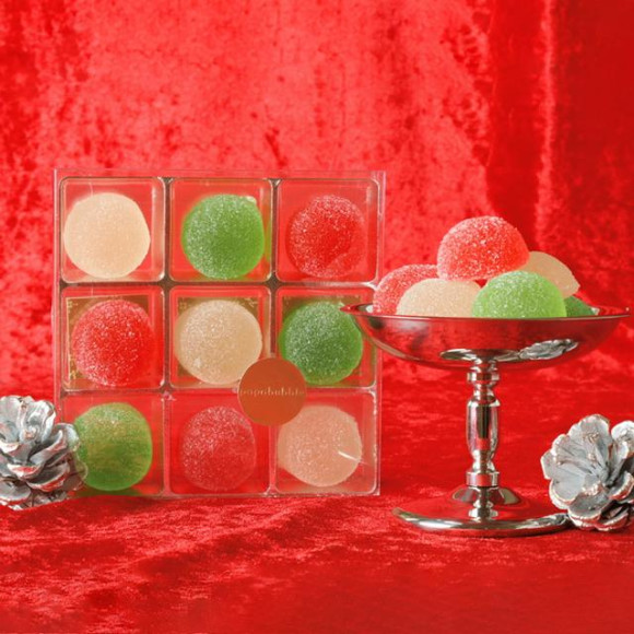 クリスマスパーティーをイメージした彩り豊かなグミは、アセロラやパッションフルーツなど甘酸っぱいフルーティーなフレーバーと、シトラスのスッキリとした上品な爽やかさを兼ね揃えた大人もお子様も楽しめるように仕上げました。アルコールは使用していないため、お子様も安心してお召し上がりいただけます。