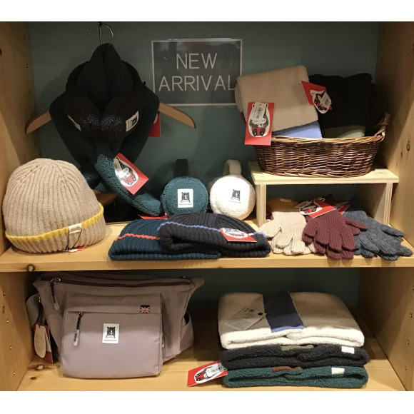 マフラーやブランケット、犬シリーズも再入荷しています。