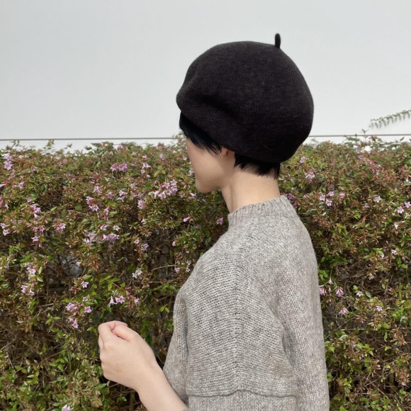 繊維が細くて肌触りが良い、ウール100%のベレー帽。自分の好きなように形がつくりやすい、ギュッと目の詰まったフェルト生地で、縦に長いのがとっても個性的です。