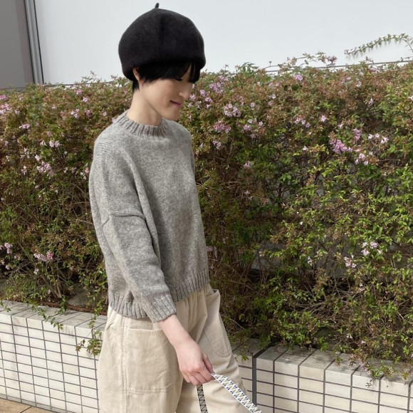 下の部分を内側に折り込んでベーシックなベレータイプにしたり、外側に折ってミリタリーベレーのようにしたり。また、のばしたまま被って上の部分を後ろに倒してもかわいい印象になります。人によっていろいろな被り方が楽しめる自由な帽子です。