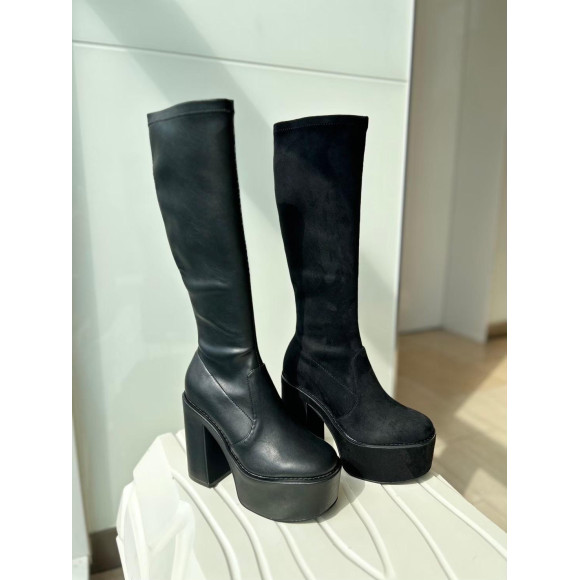 スーパー厚底にチャンキーヒールで、存在感バツグンのロングブーツ。