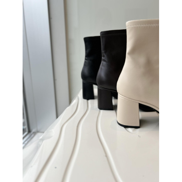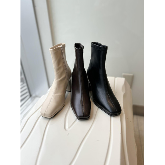 シャープなシルエットのちょっぴり大人なスクエアトゥのショートブーツ。