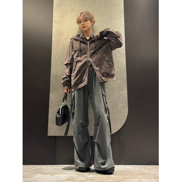 /166センチ、骨格ナチュラル、痩せ型体型、ブルベ冬 /着用サイズはSサイズかフリーサイズ、シューズはLサイズ /モード好き、メンズライク女子、高身長女子にオススメ ・パーカー ピグメント加工で一枚あればサマになる! 程よく肉厚な生地はかっこいいだけでなく暖かく過ごせます! ・シャツ トロミ素材の襟シシュウシャツ! シワになりづらくケアも楽チンなのがありがたいポイント!刺繍デザインでHAREらしいモードな雰囲気に!