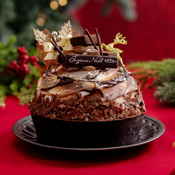 クーベルチュールチョコレートを使用した口溶けのよいチョコレートムースでヘーゼルナッツのムースを包み、アクセントにごま入りのチョコレートクランチと甘酸っぱいカルダモンと夏みかんのジャムをしのばせ、ショコラベイクドチーズタルトに重ねました。とろける生チョコレートを贅沢に飾った、クリスマスだけのチョコレートタルトです。