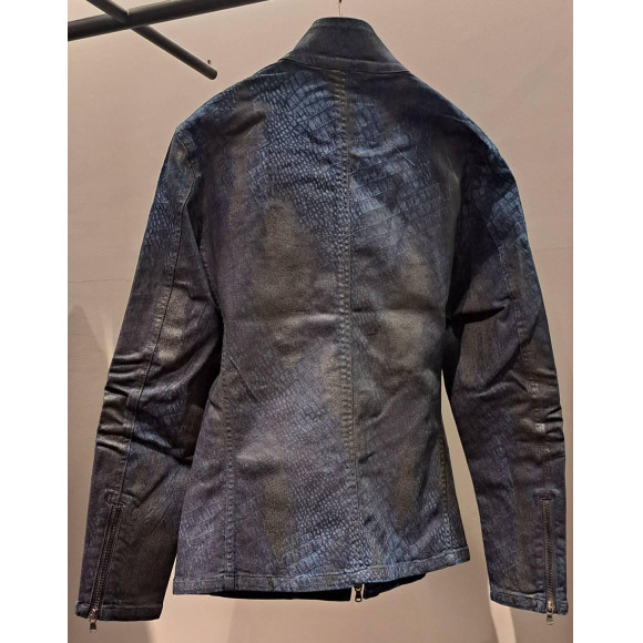 クロコダイルのエンボス加工がハードな一着、下のベルボトムパンツとのセットアップにもなりますよ!!
