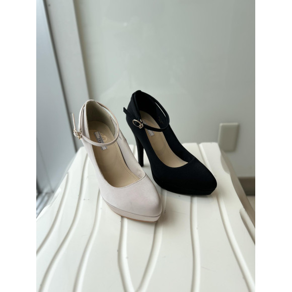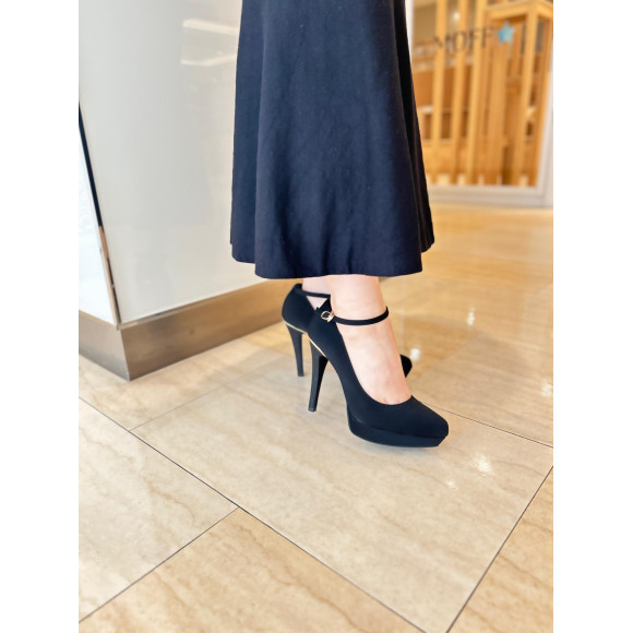 細めのアンクルストラップ付きでエレガントな立ち姿をアシストしてくれるパンプス。