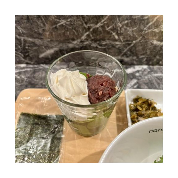 【抹茶ゼリー】は、ナナズグリーンティー自慢の抹茶パフェの土台と同じものを使っていて、少しもちっとした食感のほろ苦いゼリーです。