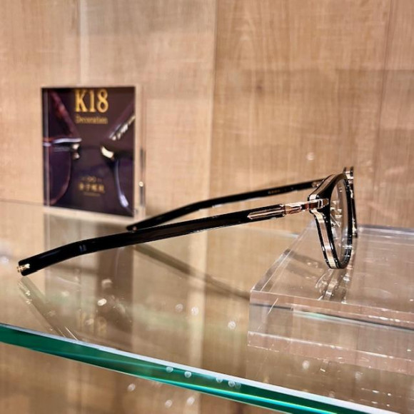 フロントからテンプルエンドまで細かなデザインが絶え間なく施されているこちらのモデルは360°どこから見ても美しく、