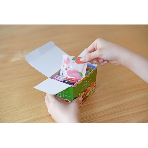 その中でも人気の6つのブレンド、アサイーラズベリー、プリンセスタイム、マヌカハニージンジャ―、エルダーフラワーマスカット、エキナセアベア、ムーンガーデンを各3ティーバッグずつ詰め合わせました。その日の気分に合わせてお楽しみいただけます!