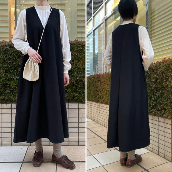 ウールにポリエステル素材をミックスさせた暖かいワンピースです。