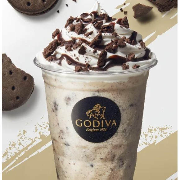 カカオ31%のなめらかなベルギー産ミルクチョコレートに、砕いたココアクッキーをたっぷりとブレンドし、仕上げには、ホワイトチョコレートが香るホイップクリームと、サクサクのクッキー、さらにチョコソースをトッピングしました。チョコレートのコクとクッキーの香ばしさ、クリームのまろやかさがとけ合う、ゴディバならではのクッキー&クリーム体験をお楽しみください。
