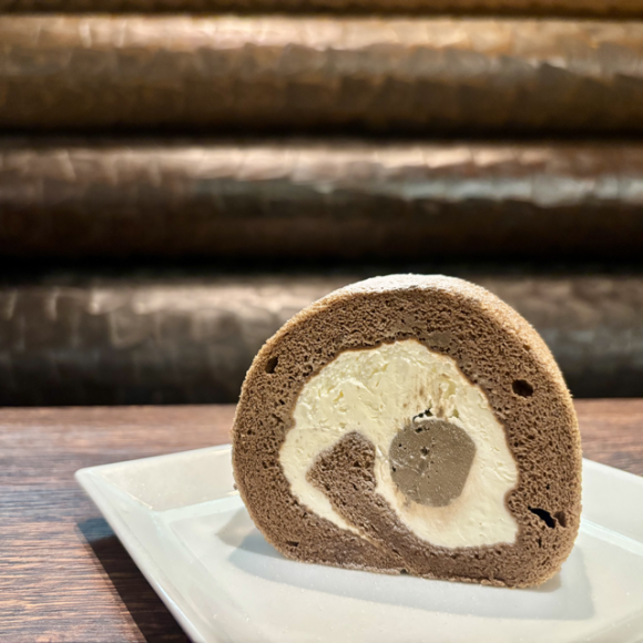ほうじ茶の香ばしい香りと生クリームのコク・甘みを最大限に生かしたロールケーキです。