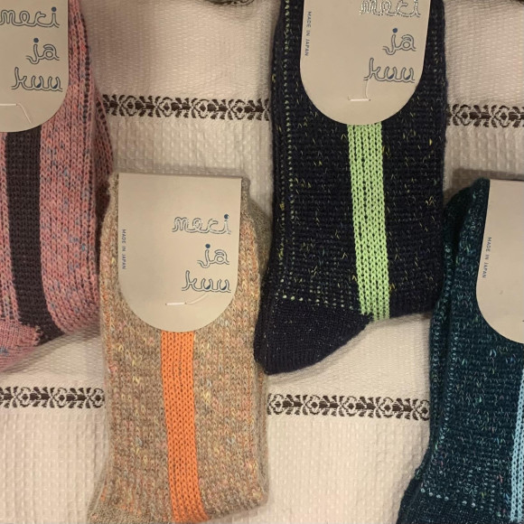 シンプルながらも、色や素材の組み合わせで変化する靴下たち。