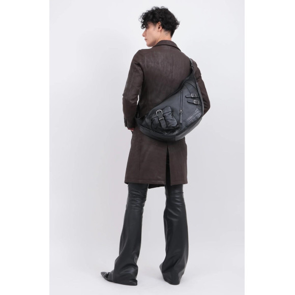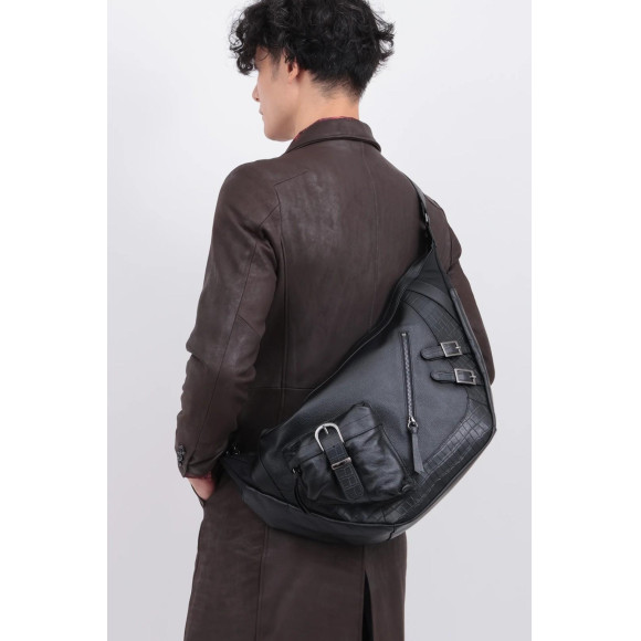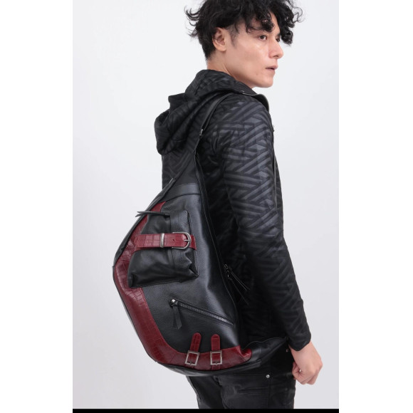 存在感あるディテールと高級感を併せ持つ異素材コンビネーションのレザーバッグ。