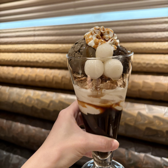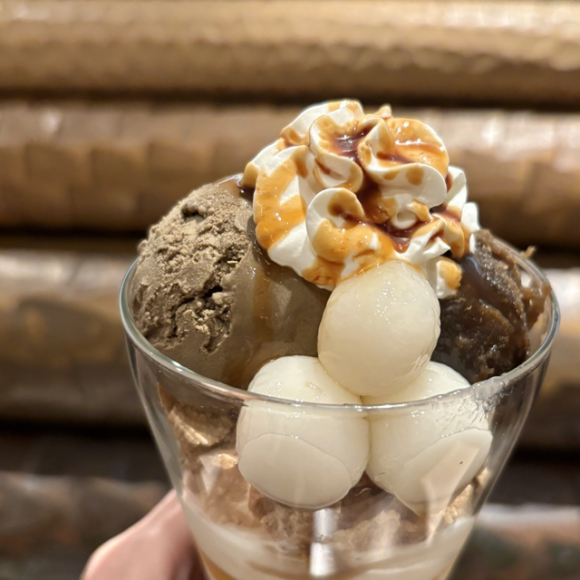 トッピングのほうじ茶アイスやほうじ茶あん、土台にあるほうじ茶ゼリーはしっかりとほうじ茶の風味が感じられ、甘さは控えめ。そこにソフトクリームのやさしいミルク感と黒蜜のコクのある甘さがプラス♡
