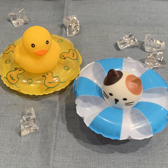 「バスボール」のご使用後は「うきわ」に「フィギュア」をのせて楽しむこともできます。