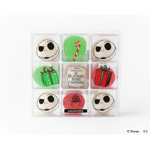 「ジャック」や、月に浮かぶ「ウギー・ブギー」のシルエットが印象的なミックス、そしてクリスマスカラーでまとめた「バンパイア・テディ」入りのミックスなど、映画に息づくユーモアとダークファンタジーを繊細な手仕事で表現しています。商品は、仲間と分け合える個包装タイプ、お子様におすすめの棒付きロリポップもご用意。個性的でありながらどこか温かい、『ナイトメアー・ビフォア・クリスマス』の世界。パパブブレのクラフトキャンディとともに、心躍るホリデーシーズンをお楽しみください。