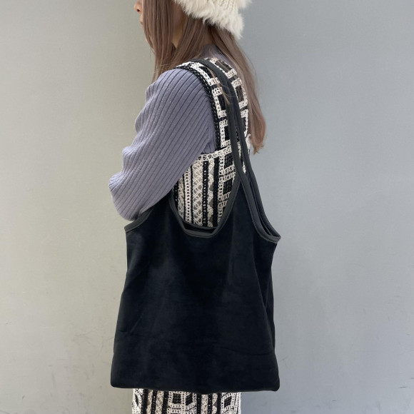 バイカラースエードトートバッグ