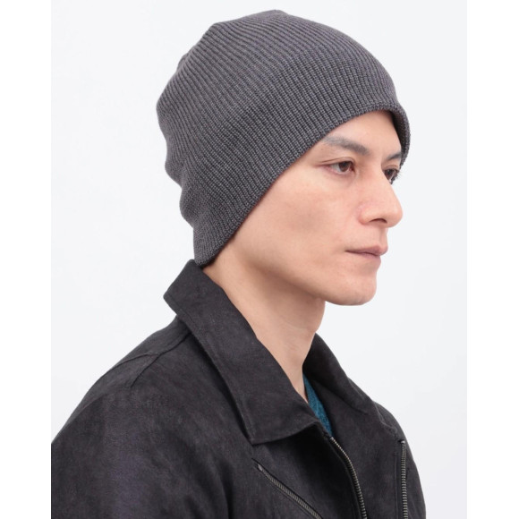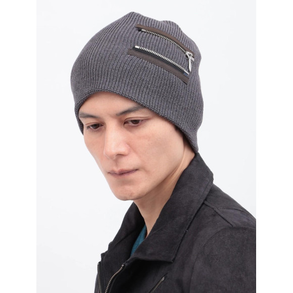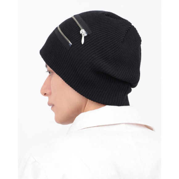 少しゆとりのあるシルエットに仕上げたサイドにジップが付いたニットキャップ。