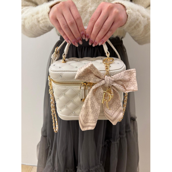 ビジューを施したキルティングデザインとスカーフリボンのチャームが可愛いバニティバッグです♡