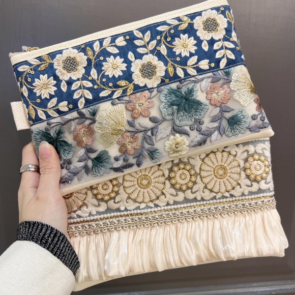 繊細なインド刺繍を使ったハンドメイドポーチ*