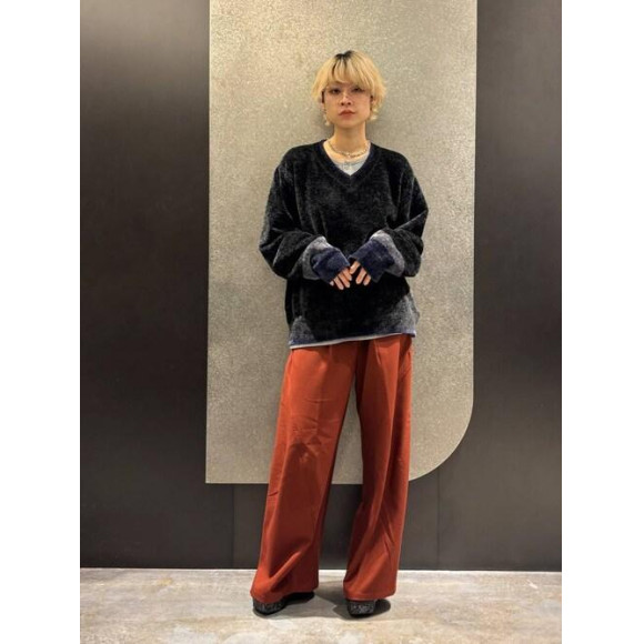 柔らかくフワフワな着心地のモールニットは、首元のVネックが顔まわりをスッキリと見せてくれます!