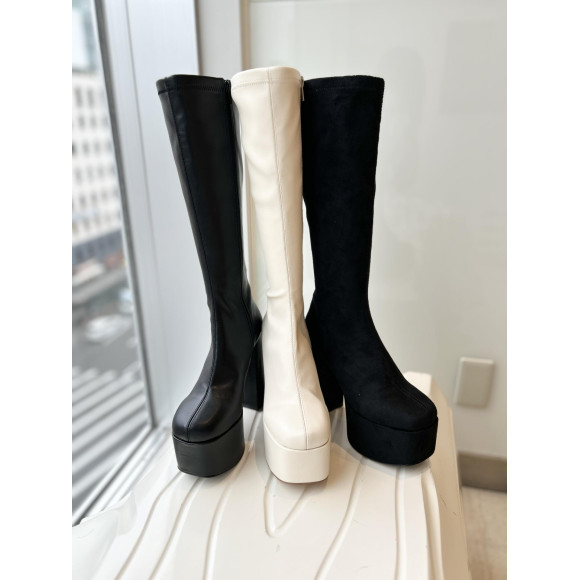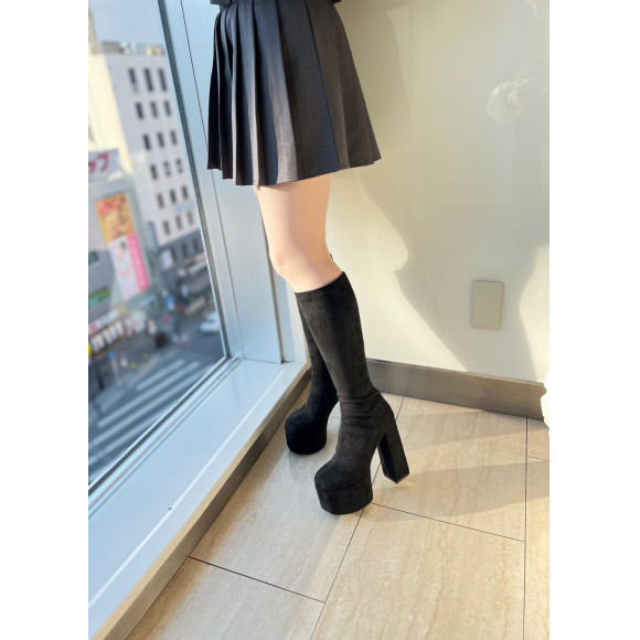 厚底チャンキーヒールNEOストレッチロングブーツ