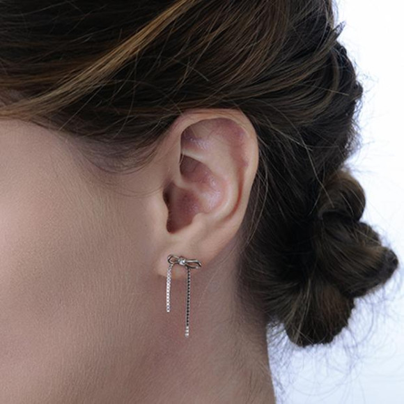 リボンの結び目にダイヤモンドが煌めき、アシンメトリーにデザインされたチェインが優雅に揺れて、胸元を華やかに演出します。