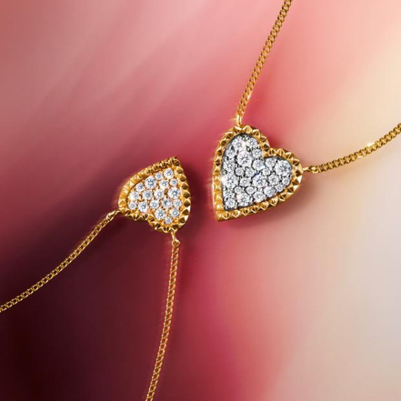 ダイヤモンドをランダムにパヴェセッティングすることで、輝きを存分に楽しめるWinter限定商品です。ハートの縁取りにはゴールドのスタッズを連ね、レディライクなデザインながらもクールな印象に仕上げています。