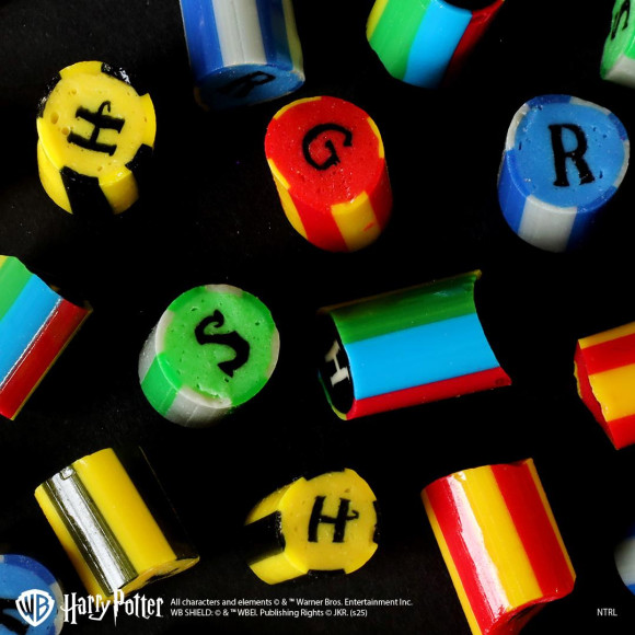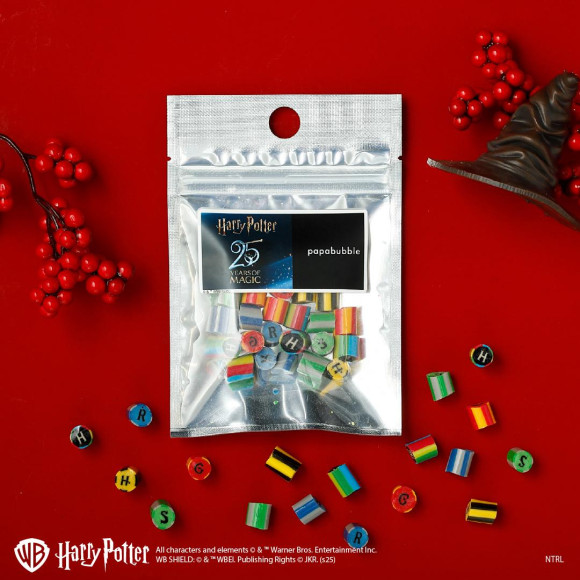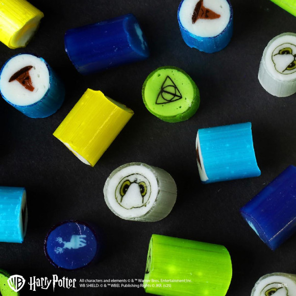 ホグワーツの4つの寮を象徴するカラー(赤・青・緑・黄)と、アルファベット(G・R・S・H)をデザインしたホグワーツミックスは、寮ごとの個性をイメージに合わせたフレーバーで、遊び心あふれる味わいをお楽しみいただけます。ひと粒が小さく食べやすいサイズで、見た目も楽しいキャンディです。