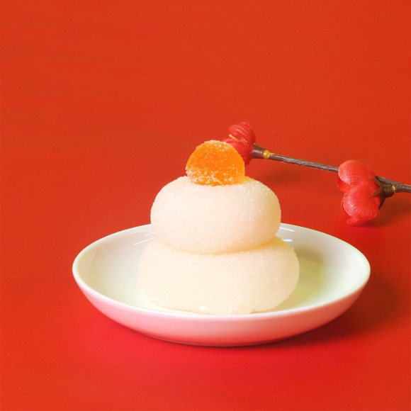 一年の始まりに“福を飾る”お菓子として誕生したアイテムで、年神様をお迎えする鏡餅をモチーフに、白いお餅の上に小さな橙のみかんを乗せた愛らしいシルエットが特徴です。ゼリーのような滑らかな柔らかさと、グミのよな弾力がありねっちりとした食感がたまらない逸品です。