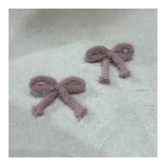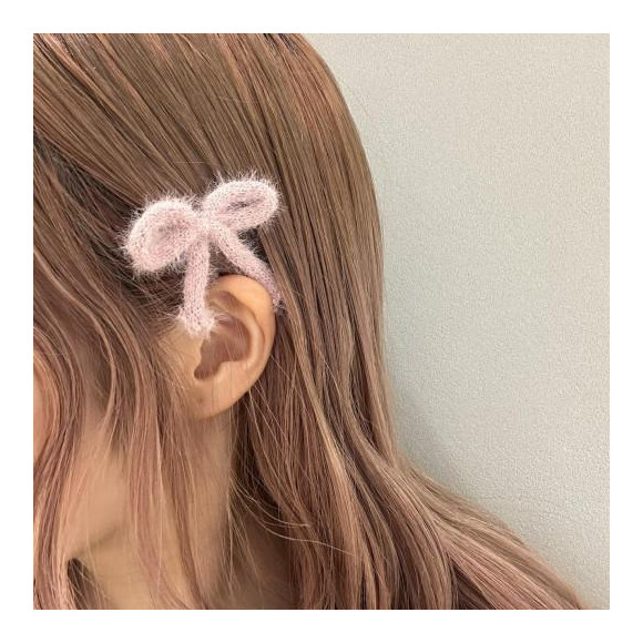 ニットリボンのフワフワ感と柔らかなピンクの色味がガーリーな雰囲気に。