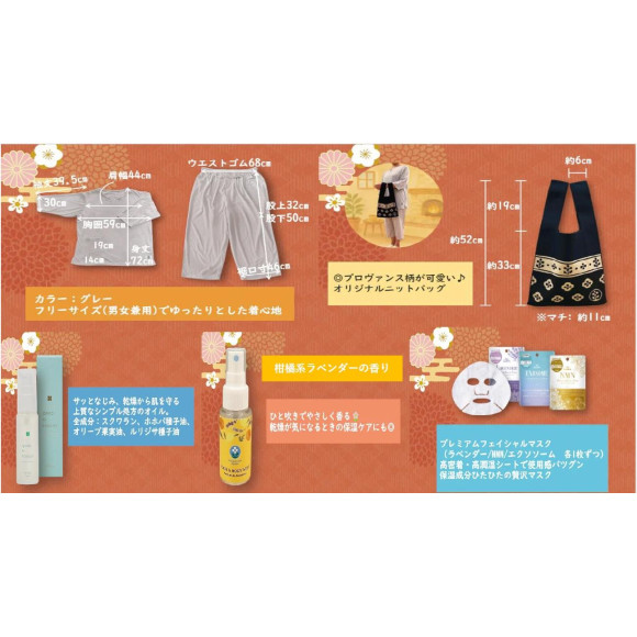 おうちでのリラックスタイムや施術時の着替えにも使えるルームウェアなど、