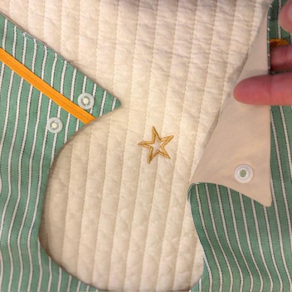 月齢が広く使えるので贈る先の赤ちゃんの月齢に悩む時にもおすすめです。スタイの裏地の内側にコーティングを施した生地を使い、汚れがお洋服にしみ込みにくくなっています。