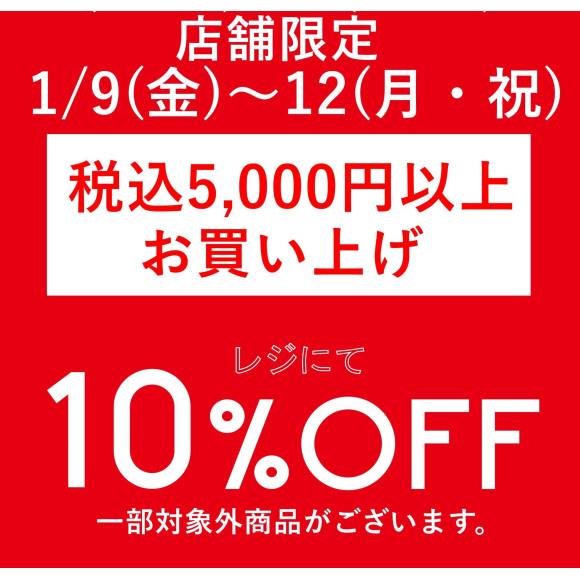 内容:税込5000円以上お買い上げでレジにて10%OFFいたします