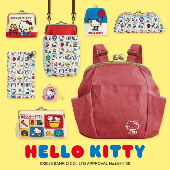 世代を超えて愛される「ハローキティ」の1970年代の復刻イメージデザインを使用したレトロな雰囲気が可愛いシリーズ。合わせ使いしたくなる、小物からバッグまで全8アイテムを展開。