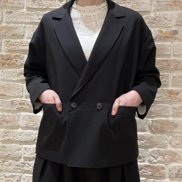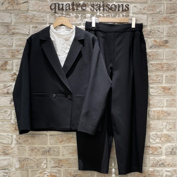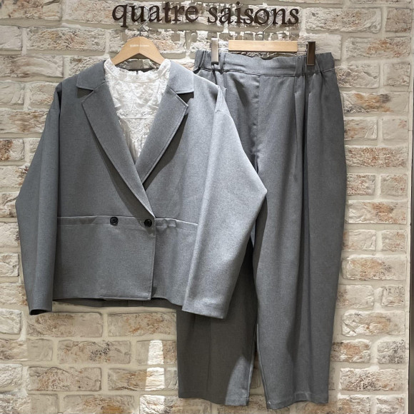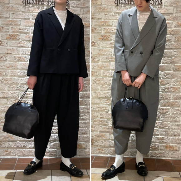 セットアップになるジャケットとパンツは、ゆったりしつつも程よいきちんと感があります。