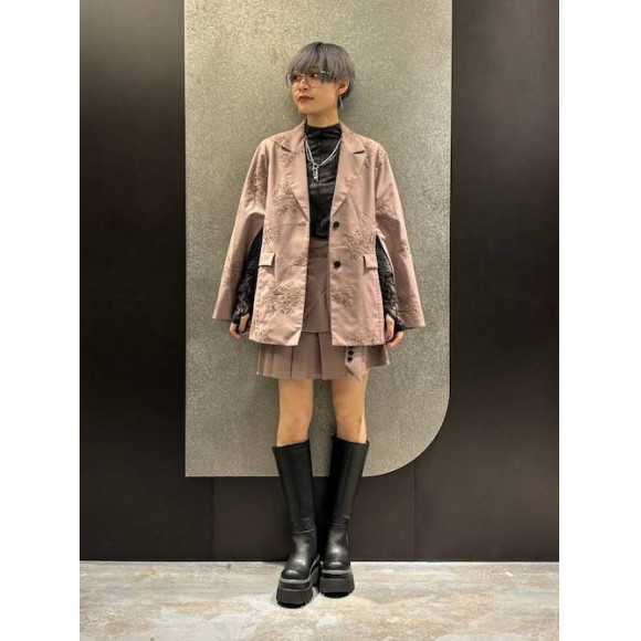 ミニ丈でも大人っぽく着れるよう、ジャケットのディテールを取り入れることで大人っぽさをプラス!
