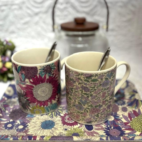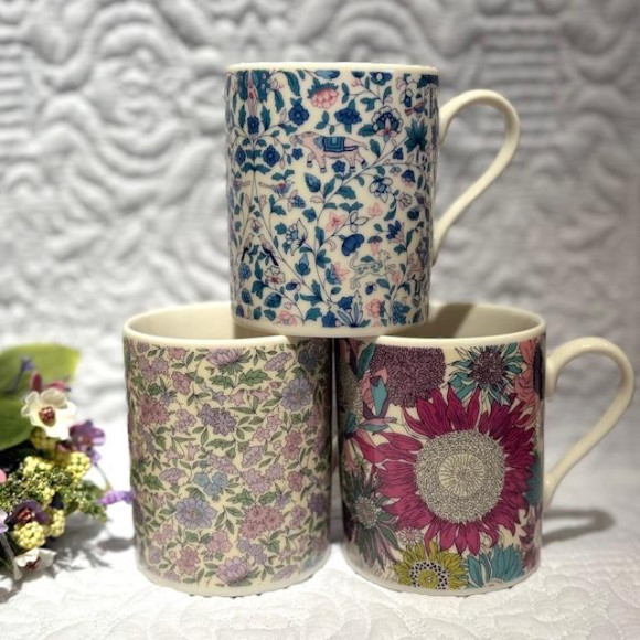 花柄が可愛らしくエレガントな装いのマグカップ。