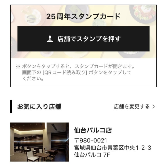 また、来店時に550円(税込)以上のご注文で、アプリからQRコードを読み込むとスタンプカードにポイントがたまり、スタンプ数によって使える特典や7のつく日に開催されるななくじであたりが出ると貰えるクーポン、誕生日クーポンなど…ナナズに来ることがより一層楽しくなるアプリになりました!