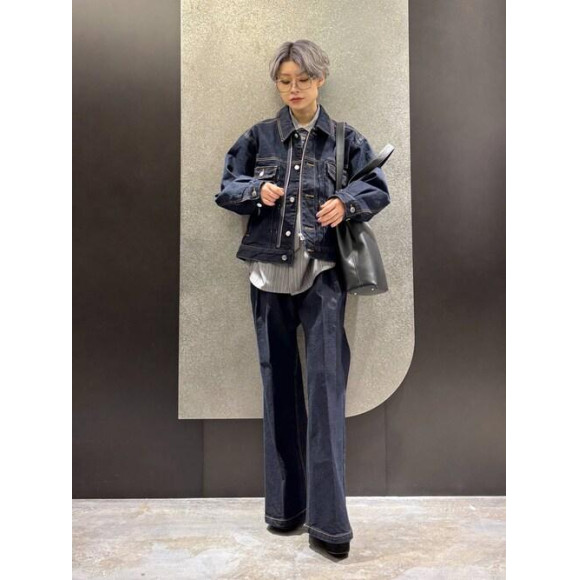 ハリとコシのあるデニム生地を使用し、ワイドなシルエットを立体的かつ美しくキープします!