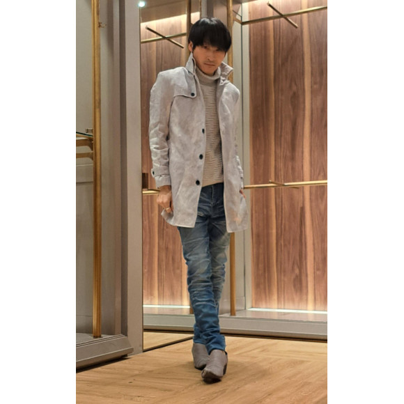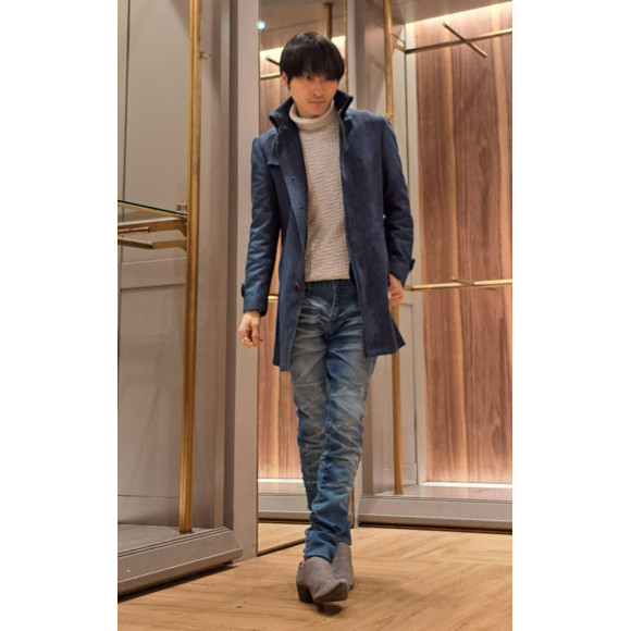 僕が着ているライナー付き返し襟コートならスッキリシャープなシルエットに。