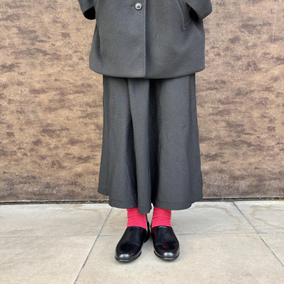 独特な靴のシルエットが足元をきれいに見せてくれるので、素足はもちろん、靴下とのコーディネートでアクセントを加えるなど、幅広いスタイリングに合わせていただけます。